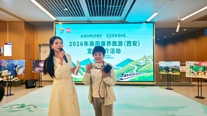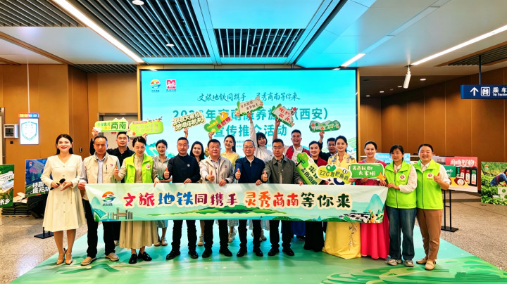 为深度宣传推介陕西商南县文旅魅力,精准预热“五一”旅游市场,4月26日,以“文旅地铁同携手 灵秀商南等你来”为主题的2026年商南康养旅游(西安)宣传推介活动,在西安地铁纺织城站及地铁9号线沿线举办。