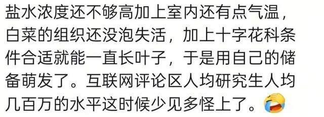 视频显示,陈先生家的酸菜缸中一颗腌制的酸菜长出了新叶子,对此有不少网友感到好奇,也有网友表示无土盐水栽培金富宝配资,卖给农学生吧,不过另有网友称这种情况是盐度不够加上室内还有气温所致。
